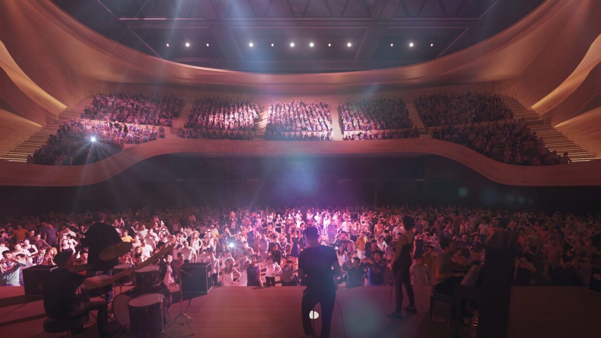 We produced the animations and renderings that turned the design concept into a compelling, easy-to-read visual story for the jury. Working highly responsively, we emphasized context as much as form, showing the Adour, the bullring and the park setting alongside the building’s exterior arcades and the auditorium’s multiple configurations. So the project’s scale, materiality and programmatic versatility came across vividly. The film brings interior and exterior sequences to life in a lively, atmospheric way, highlighting circulation, staging options and audience experience. Our visuals supported Atelier Ferret’s narrative and helped make the strengths of the proposal unmistakable.